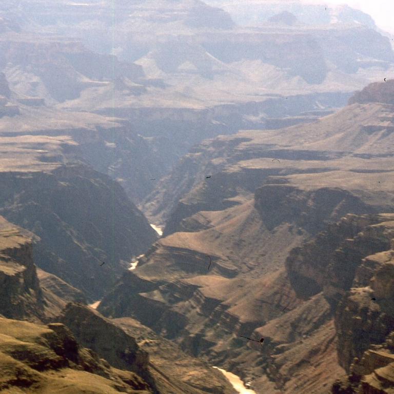 Der Grand Canyon ist etwa 450 km lang (davon liegen 350 km innerhalb des Nationalparks), zwischen 6 und 30 km breit und bis zu 1800 m tief. Der Name des Canyons stammt vom Colorado River, der früher in Teilen Grand River genannt wurde.